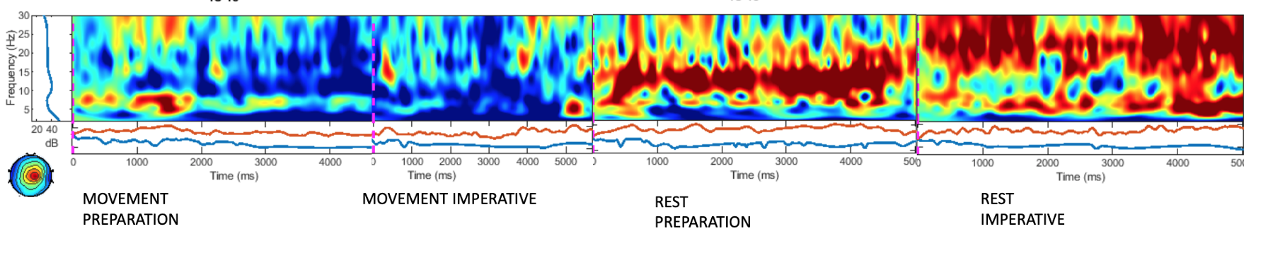 To perform classification we trained a SVM model based on the power spectrum features extracted during the post-processing phase, dividing the signal in 500ms windows to replicate an online application, the overall accuracy of the task was > 80%: