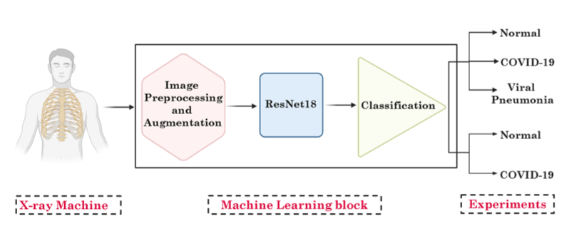 Developement of an algorithm to classify toracic x-ray images with covid induced pneumonia from healthy subject and patients with non-covid related pneumonia. We trained a state of the art CNN adapting an open source imageset and evaluated the class activation maps of the network to extrapolate remarkable insights in such diagnostic science based on the decision rules developed by the model.